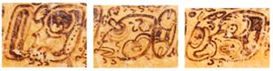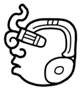 · This element is no longer considered to be a variant of syllabogram ch’o. It only occurs to write ch’ok in the phrase u-ch’ok k’aba’, and always in combination with the so-called “row of teeth” variant of ko (also no longer considered to be a syllabogram). Instead that fixed combination of “goggle eyes” above and “row of teeth” below is now considered to be CH’OK (i.e., a logogram) – see CH’OK for more information.