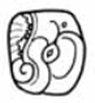 · Features: o An upturned (rotated) iguana head. o Normally, an iguana head would face left and consist of: § A largish, round eye, with a protector over the upper half. § (Optionally) tiny dot for a nose hole. § A large mouth (= long, sinusoidal curve) with: · (Often) a jagged row of triangular teeth pointing downwards (hanging from the upper jaw and peeking out of the mouth). · (Optionally): vertical lines in between the teeth from the upper lip to the floor of the glyph. § A reptilian-spiral to the right of the mouth, curling inwards anticlockwise. o Such an iguana-head is rotated 90 degrees clockwise, so that it faces upwards. · Do not confuse hu with SIH = “to be born”: they are to all intents and purposes identical, except that SIH has an arc of tiny touching dots around the face, absent in hu: o The dots may range all the way from just in front of the face, to just under the chin and a bit of the head, just past the forehead, to half of the underside of the mouth and half the top of the head. o However, they never go 3/4 around the glyph, from the entire underside of the mouth, face, and entire top of the head.