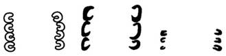 · Features – a “boulder outline” glyph consisting of: o Optionally, a bold border (MC, all around, making a “cartouche”) or reinforced walls and ceiling only (JM, a “symmetric cave”). o Inside: Typically, 9 non-touching crescents, each pointing upwards, in a 3 x 3 matrix. § The crescents can be non-bold (K&H) or bold (TOK.p12.r2.c3). § When bold, they’re fairly bloated, with no sharp tips – almost bold-u’s rather than crescents. o Outside: Three or more stacked horseshoes, on the left and right, pointing “inwards”, i.e., pointing to the right on the left side, and pointing to the left on right side). § There is an equal number of horseshoes on both sides. § Some epigraphers refer to these horseshoes as “nubbins”. · Subvariants (3): o A. Full: “horseshoes” + boulder form (e.g., K&H, as in the feature description above). o B. Boulder form only (TOK.p12.r2.c3). o C. “Horseshoes” only (TOK.p10.r5.c4): § 1. Both sides (TOK.p10.r5.c4, MHD.ZD2s.2&3&5, 0595tp). § 2. Left side only (0595tl). § 3. Right side only (0595tr). As so often is the case with Maya glyphs, “C” can be considered a “reduced form” of “A”, or as a conflation of “A” and whatever main sign takes the central position or as a main sign “covering” the full form of nu (placed between the nu and the viewer), with just the horseshoes sticking out from either (or both) sides. · Note that Thompson considered the left and right reduced forms to be “rotatable” forms of a single stack of horseshoes, and hence assigned them the codes T134a and T134b respectively. He apparently didn’t realize that they’re not rotated forms of one another, but instead a (single) reduced form of the full form, with the central part missing. This full form is in fact a “main sign” and is not rotatable. This is why these stacked horseshoes never appear at the top or below a main sign; at least, not in their capacity as syllabogram nu – they do (regularly) appear underneath a main sign as a reduced form of ji. · Do not confuse the very reduced form of no (“C2” and “C3” above) with the visually identical “rectangular” / “horseshoe” form of ji: o no occurs only on the left and right of main signs o ji occurs only on the top and bottom of main signs.