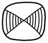 Subvariants (2) · A. Symmetric: o A knot in the middle. o On each side of the knot, trailing, slightly curved, parallel bands. o Each of the two groups of bands ending in two curved tassels. · B. Asymmetric: o Top: two curved L-shaped bands, with two crossed bands between them; the crossed bands can optionally have spines or reinforcements. o Middle: the two curved L-shaped bands end in a washer (optionally bold centre). o Bottom: two or three spiral- (i.e., “feeler”) or leaf- or tooth-shaped tassels. · Curved: 2-3 dots on the inner side of the outer reinforcement. (What does this mean?)