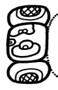 · Features – a vertically rectangular element (i.e., much taller than wide) consisting of: o Two circles, with an “eyeball” feel about them: § “Eyeball” in the sense of two circles, the inner one sharing part of its perimeter with the outer one. § The inner circle optionally cross hatched. o (Optionally, but often) there is another element between the two “eyeballs”. o This variant seems to be exclusively vertical – there doesn’t seem to be horizontal form. · There is an immense degree of variation in the subvariants of this variant. o The “eyeballs” can be both looking left, or one “eyeball” up and one “eyeball” down. § Only when looking left are there additional elements between them. When looking up and down, they touch in the middle of the glyph. § The additional elements can be: · One set of crossed bands. · Two short, slightly curved horizontal lines. · A series of stacked slightly curved rectangles / rectangular ovals.