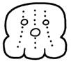 · There is a glyph which resembles CH’ICH’ but with three vertical rows of (non-touching) dots –at the position of the left eye, nose, and right eye. The canonical form of CH’ICH’ does not have these three columns of dots: