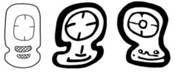 · There is at least 1 instance of two “upside down la-faces” flanking a triangle of three smaller touching dots.