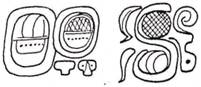 § It can occur with or without Glyph-Z. The fullest form in the SS is: <number=coefficient> + Glyph-Z (= bixiiy) + Glyph-Y (=sim), but the Glyph-Z may be missing, because it is only a noun classifier for (the number of) days, and noun classifiers are optional in Classic Maya. When Glyph-Z is absent, the coefficient can appear directly to the left of Glyph-Y.