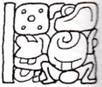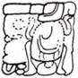 o SIM is a tripartite glyph with a (horizontal) rectangular top (K’AWIIL), a boulder-outline middle, and a (horizontal) rectangular bottom (a washer between two squatting legs), these three being stacked on top of one another.