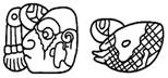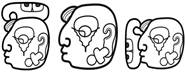 · No glyphs given in K&H, K&L. The glyph given in BMM9.p14.r3.c3 (complete pronunciation not given) is not explicitly linked to the other examples here, but the similarity seems to justify it.