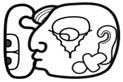 o Optional obsidian blade, acting as a kind of “signific” (it can be above or to the left, or even as a “forehead ornament” (YAX Lintel 37 A4)), to indicate the instrument with which the wound or injury is caused.