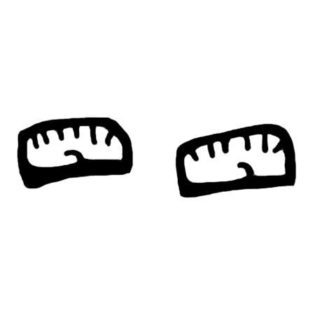0001 u | 1bh | 1bl | 1br | 1dh | ≈T3 | ≈T13 | ≈T1, T2, T11 | No T# in TWKM | ≈HE6 | ≈HE7 | ≈HE6 | optional part of some signs, e.g. SE1.4 (no phonetic value) | 1ex | 1mp | ≈T105, T191 | No T# in TWKM | ≈HE7 | No MHD code found |