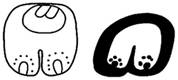 · Features: o The main part of the glyph is a “duckbill” shape – representing a “tooth” – with reinforced or bolded left wall and ceiling (optionally the right wall as well). o There’s a “wood property marker” in middle of the main part. o On the left, “outside” the tooth, there’s an “axe”: § If the bill of the duck is high enough off the floor level, the handle of the axe may be visible, after the axe has been placed behind the beak (MC, K&H, JM). § If there’s only a tiny indentation to show the “duckbill”, then there’s no room for the hand of the axe to be visible (TOK.p16.r4.c2). · Subvariants (3+): o A. With an “axe” on the left (canonical/typical). o B. Without an “axe” on the left – in fact, nothing (MHD.ZYA.4, T601). o C. With something else (not an “axe”) on the left (MHD.ZYA.2). And independently of what’s on the left: o A partitive disk in the “tooth” (MHD.ZYA.2). o A partitive disk, two struts, and two small touching dots (attached to the left of the partitive disk) in the “tooth” (MHD.ZYA.3, T601). · Do not confuse chu with a whole set of glyphs with the “tooth” as the main outline of the glyph, but with various distinctive elements on the left: o chu has an “axe”. o ha has a “bone property marker”. o k’e has one end of a “bone”. o t’a? has a “torch” (this reading is still only a proposal). o ye has two or more “cascades of dots”.