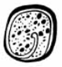 · Features – a boulder outline glyph (square with rounded corners) with: o A single, not very tightly curled, anticlockwise spiral forming a bold wall on the right wall, roof, left wall, and the left half of the floor. The spiral typically begins at the bottom right corner, but can also begin in the middle of the floor (TOK.p17.r2.c2). o The bold spiral does just “one turn”, ending in the middle of the glyph. o Jaguar spots on the entire inside of the glyph (except for the spiral). · Iconographic origin: o Although more “abstract” than the “wavy jaguar tail” variant, it would appear that this variant is also derived from the representation of a jaguar tail. · Do not confuse with KUK, which looks similar but has full cross-hatching in the entire background, instead of jaguar spots. See Prager-TS576.