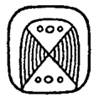 · Features: o Two “rugby balls”, often at an angle (similar to the positioning of real rugby balls, in preparation for the kick). o While the pedagogical sources give the rugby balls with a NE-SW orientation, MHD and Bonn give the opposite – NW-SE – orientation. Thompson gives both orientations. · Do not confuse this variant of nu with the visually very similar reduced form of k’u: o nu has a solid line reinforcement of the left edge whereas k’u has a dotted line as the line reinforcement of the left edge. o The two elements of nu can be rounder whereas those of k’u are more egg-like (“rugby balls”) [only in the TOK example].