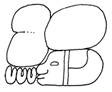 · Features: o An anthropomorphic head with vertical bar down the middle, from top to bottom. o This appears to be a post-Classic – perhaps also regionally restricted – form, as there are only three occurrences in the MHD database, and they are all from CHN. And not only just from CHN, but from just one single monument in CHN.