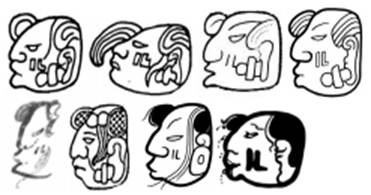 o IX has one or more strands of hair (representing the long hair of a woman) whereas IXIIM (optionally) has a long, single, bold scroll (representing the sheath leaf of the corn cob) with two or three touching dots (representing maize kernels).