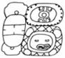 · The K’IN can be infixed either in the bay formed by the thumb and the forefinger, or at the bottom (=on the back of the hand itself), replacing the partitive disk, but centred.