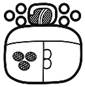 · Top: (often) 3 non-touching dots in a triangular formation, pointing up = “upside-down face” – but there is a lot of variation in this: it can also be empty, or have a single or two non-touching dots). Often empty if the optional “KUCH” is present, as this is sufficient to identify the glyph.