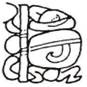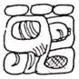 o SIM is a tripartite glyph with a (horizontal) rectangular top (K’AWIIL), a boulder-outline middle, and a (horizontal) rectangular bottom (a washer between two squatting legs), these three being stacked on top of one another.