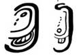 · The iconographic origin of this glyph is the crescent moon, with the two points meeting at the top being the endpoints of the crescent. It’s used to write the word “moon” as the logogram UH, but it’s also the syllabogram ja. There are no distinguishing characteristics between these two usages – it’s the “same” glyph, distinguished only by context. MHD distinguishes them with a lowercase suffix to the 3-letter MHD character code – ZU1a and ZU1s respectively: