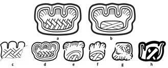 o Bottom: multiple crossed bands or just two (=”AT”).