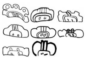 § A full YAX is asymmetric – one side (the “inside” edge, which attaches to main signs) is smooth, while the other side (the “outside” edge, away from the main sign) has two tiny indentations, giving it a tri-lobate edge. In contrast, a full CHAK is rectangular/oval with no indentations on the outer edge.