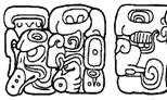 [40] D13-C17a. The glyphic text at the end of the east side of this inscription (D13 to D19) has “extra-high calendar units”. It seems to recount two events, at two different (mythical?) places: one at Juun Witz’ (on 1-Ajaw 13-Mol) and another at Ihk’ Nahb Nal (on 1-Ajaw 13-Yaxk’in). The latter event speaks of a ritual execution and is, in that sense, connected to the historical execution of Waxaklajuun Ubaah K’awiil recounted on the west side (a “historical/mythical reference”).
